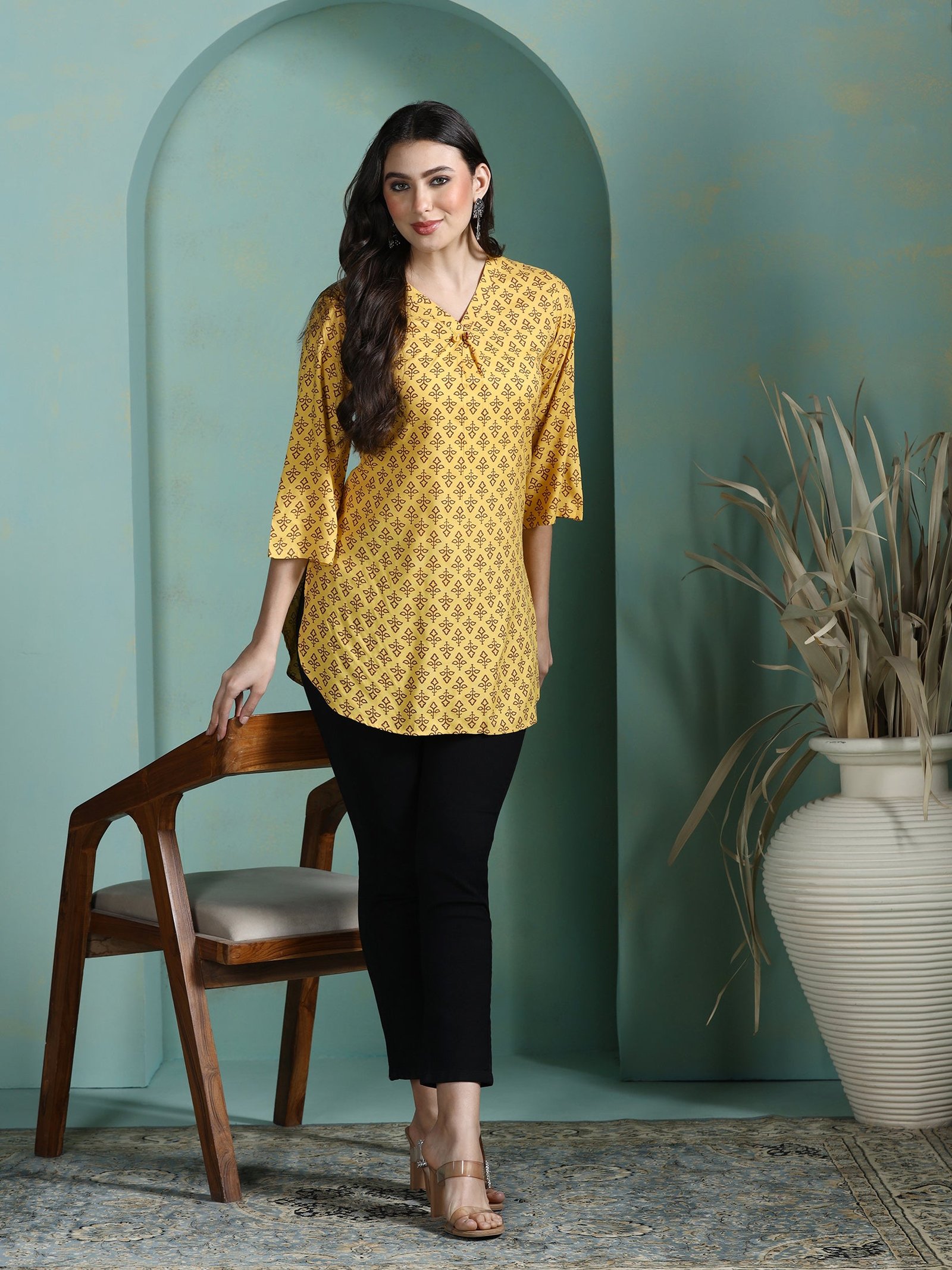Light up your wardrobe with this cheerful yellow printed tunic featuring premium Liva fabric. The vibrant print pattern adds playful charm while the relaxed tunic silhouette offers comfort and ease for everyday wear. Liva’s breathable composition and soft texture keep you feeling fresh throughout the day, making it perfect for casual outings, social gatherings, or leisurely moments at home. The sunny yellow tone radiates positivity and pairs beautifully with neutral or contrasting bottoms for versatile styling options. Whether styled with jeans, leggings, or traditional wear, this tunic delivers effortless elegance and comfort that makes it a must-have piece for your casual collection.